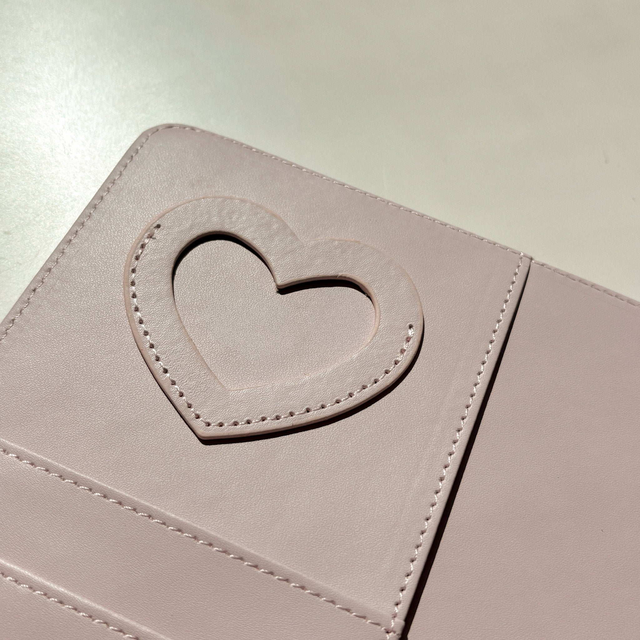 - heart-shaped photo slot & 4 card slots (3.5" wide) on inner cover