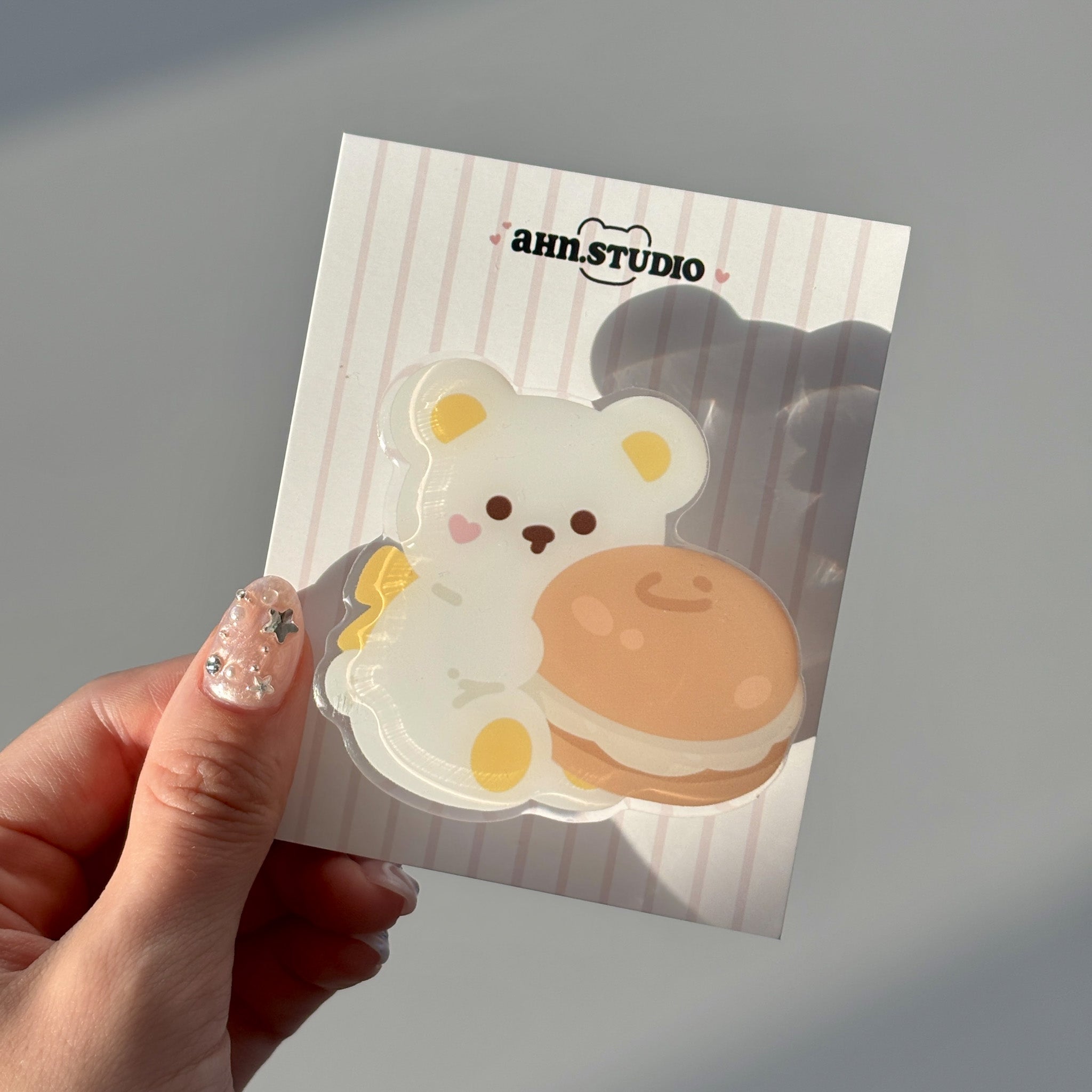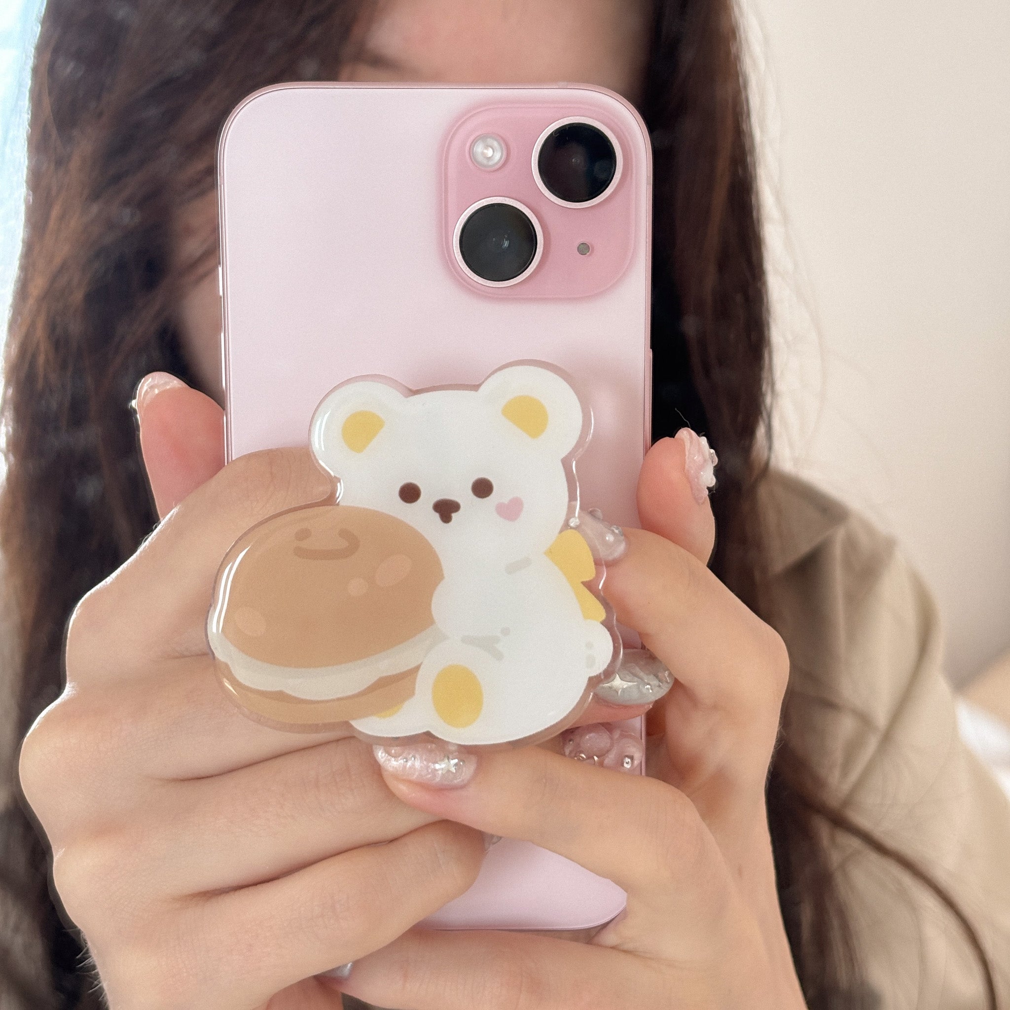 phone grip has a glossy, epoxy coating. phone grips come with a double-sided, sticky adhesive to stick on your phone case. these work best on smooth phone cases, as silicone or textured cases may be difficult for the grip to adhere to.