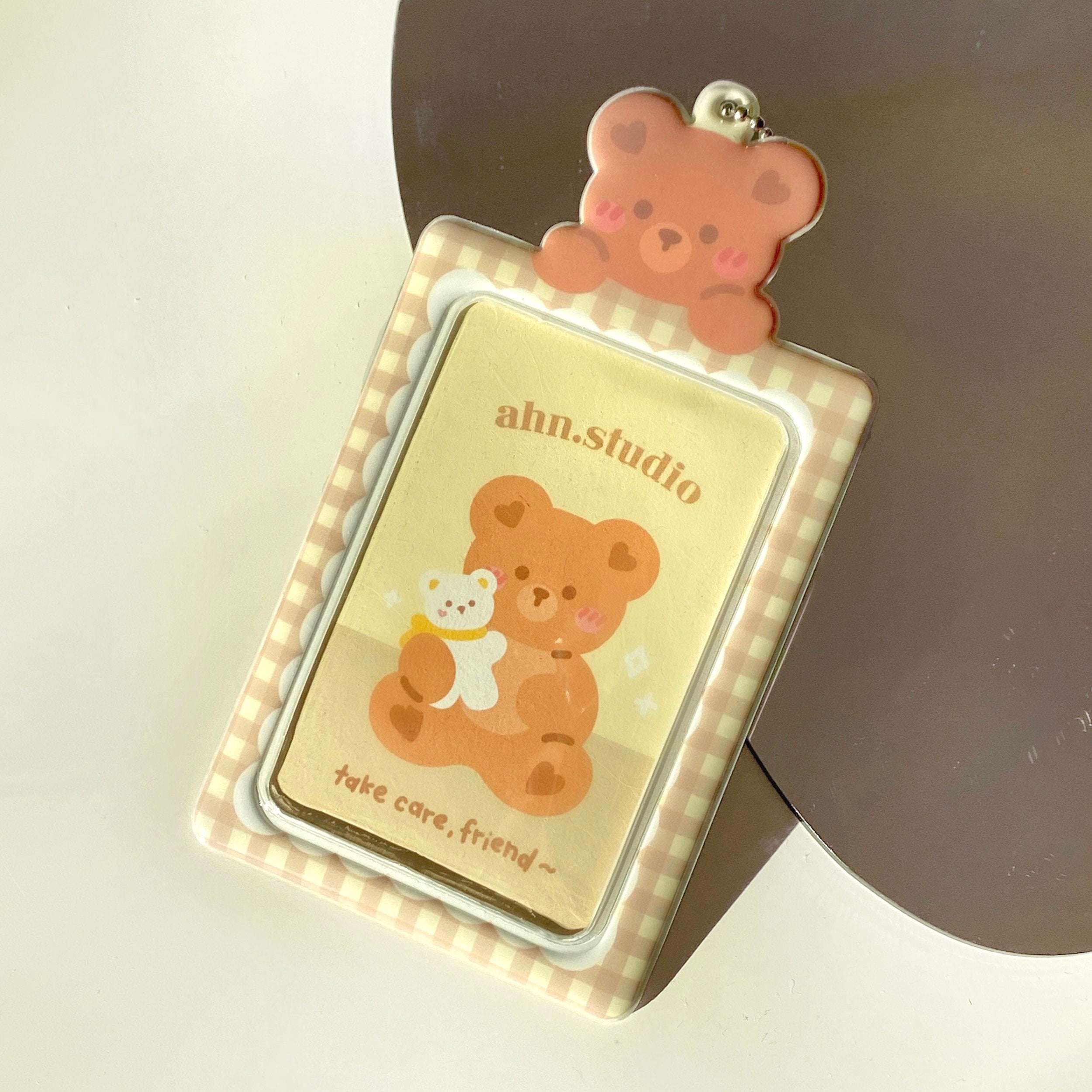 brown teddy photo card id holder