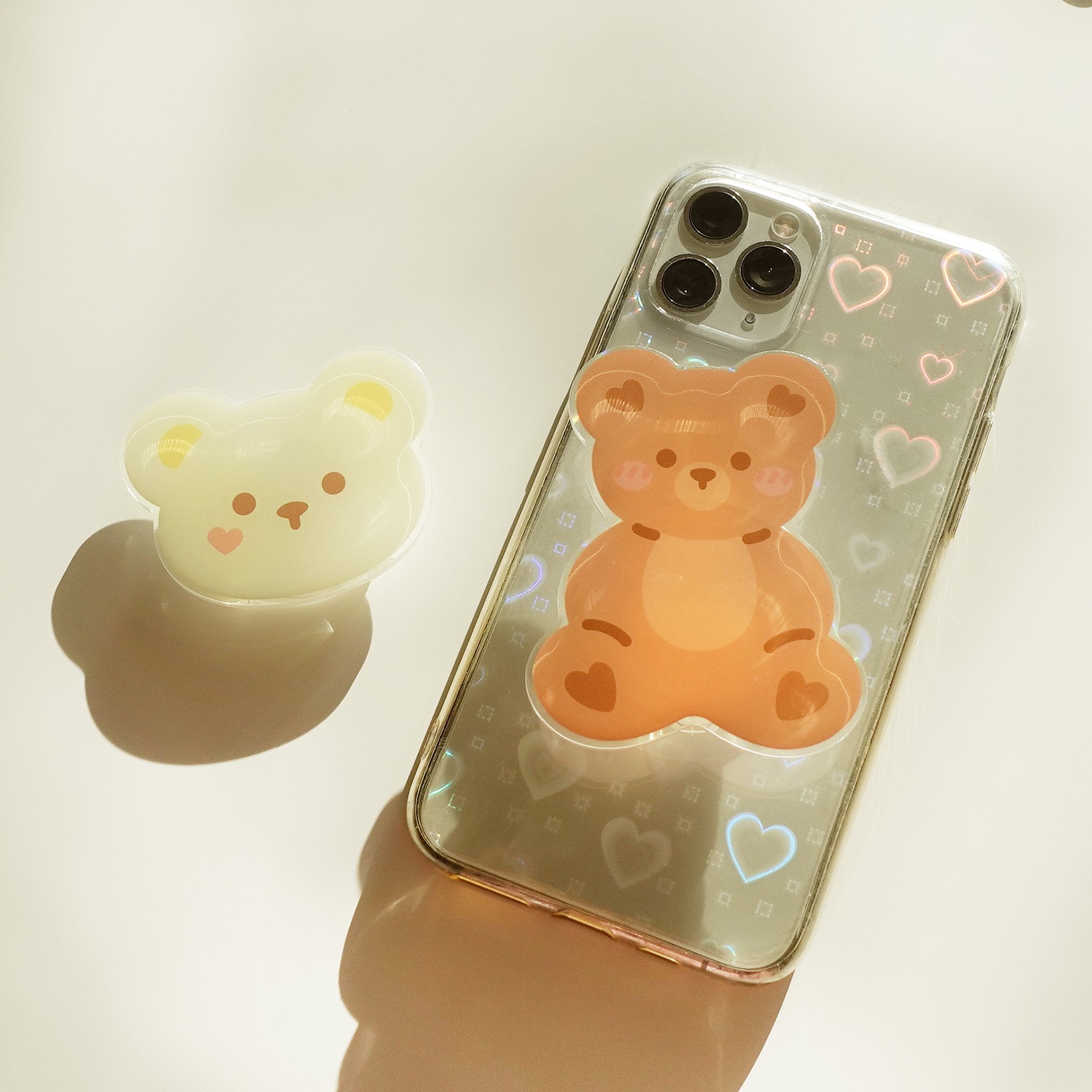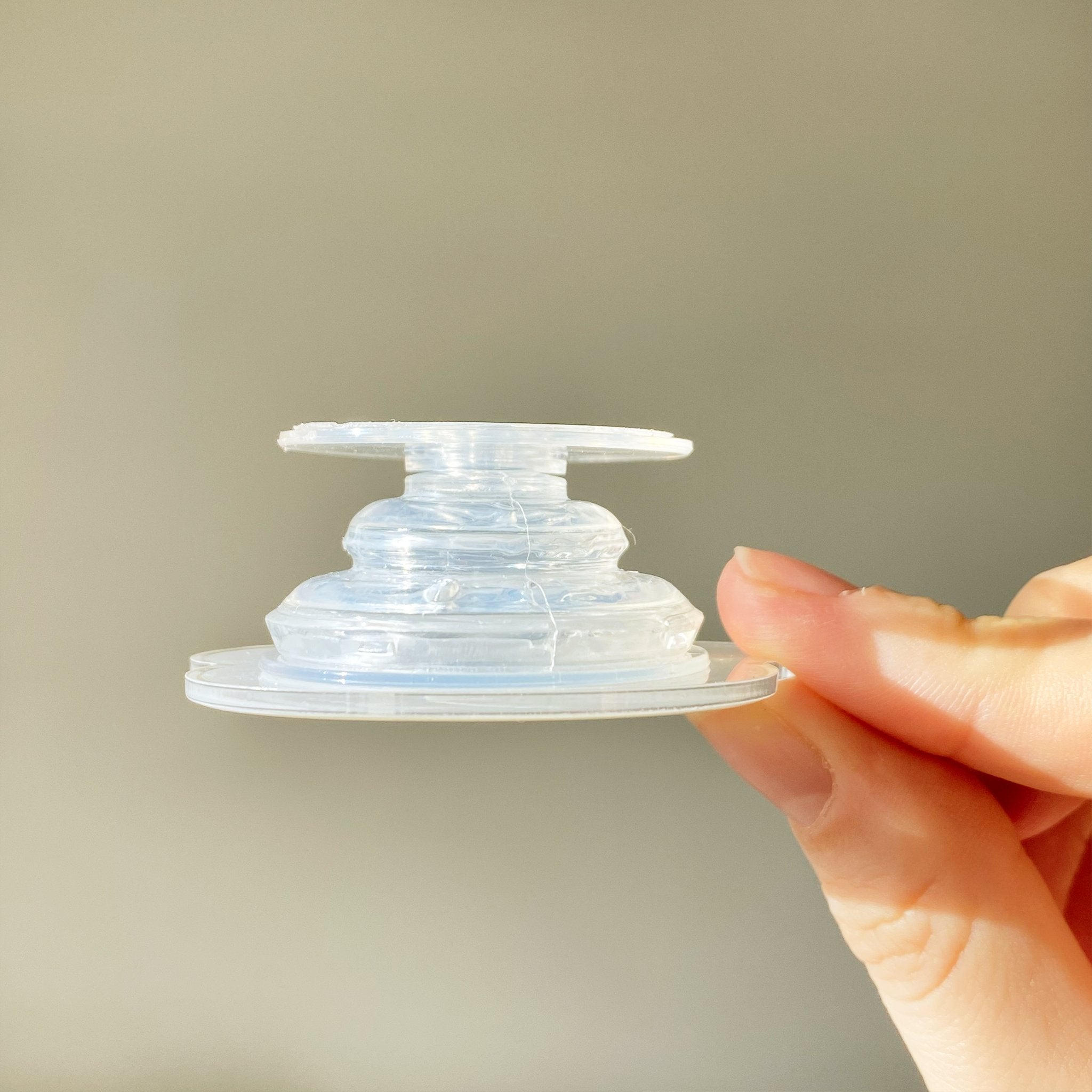 each phone grip has a glossy, epoxy coating. phone grips come with a double-sided, sticky adhesive to stick on your phone case. these work best on smooth phone cases, as silicone or textured cases may be difficult for the grip to adhere to.