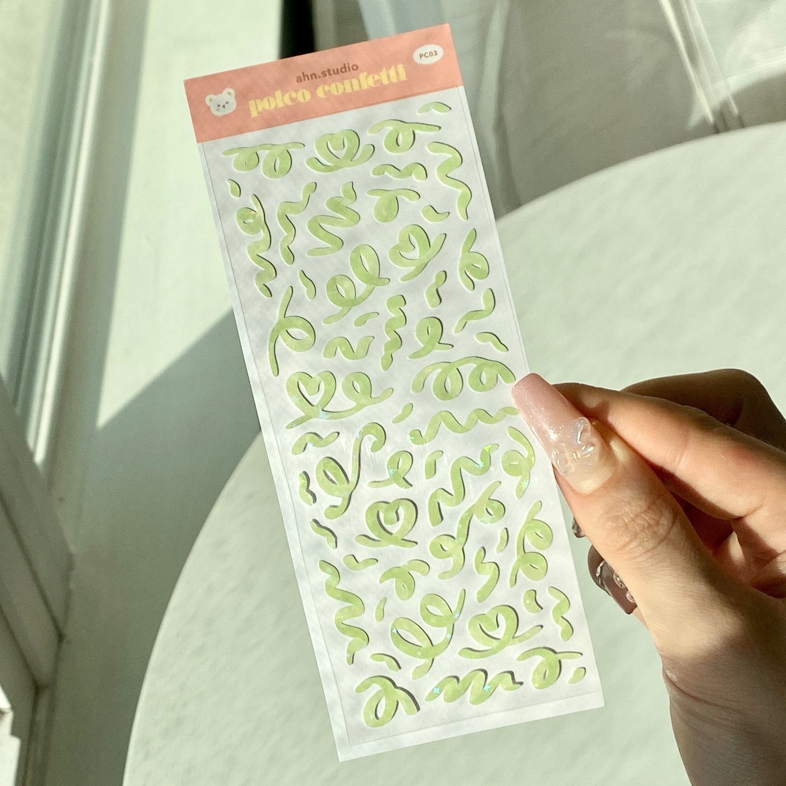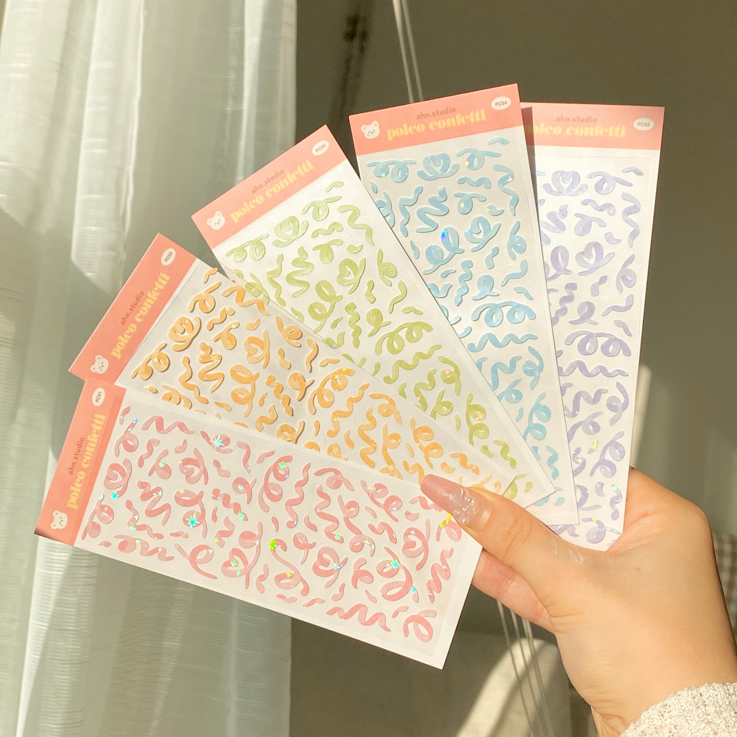 • 5.5” x 2.25” sticker sheet printed on glitter waterproof sticker paper