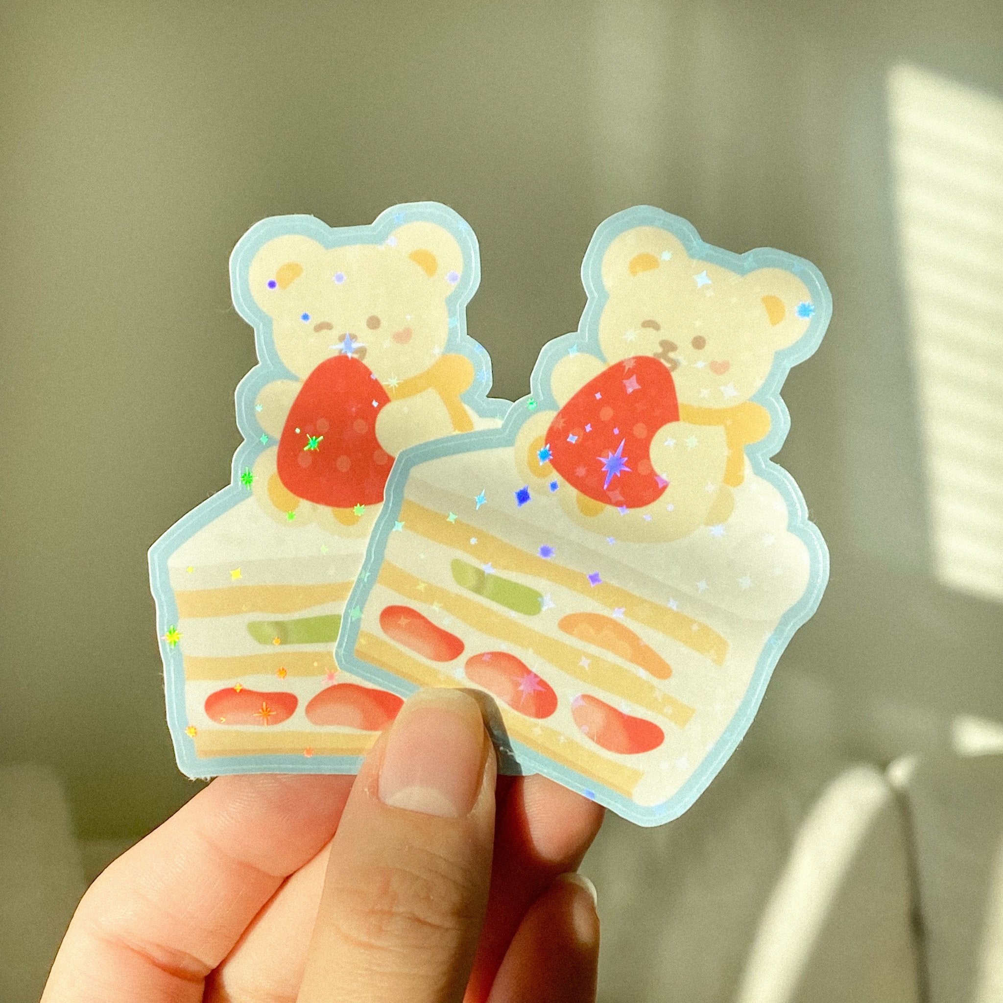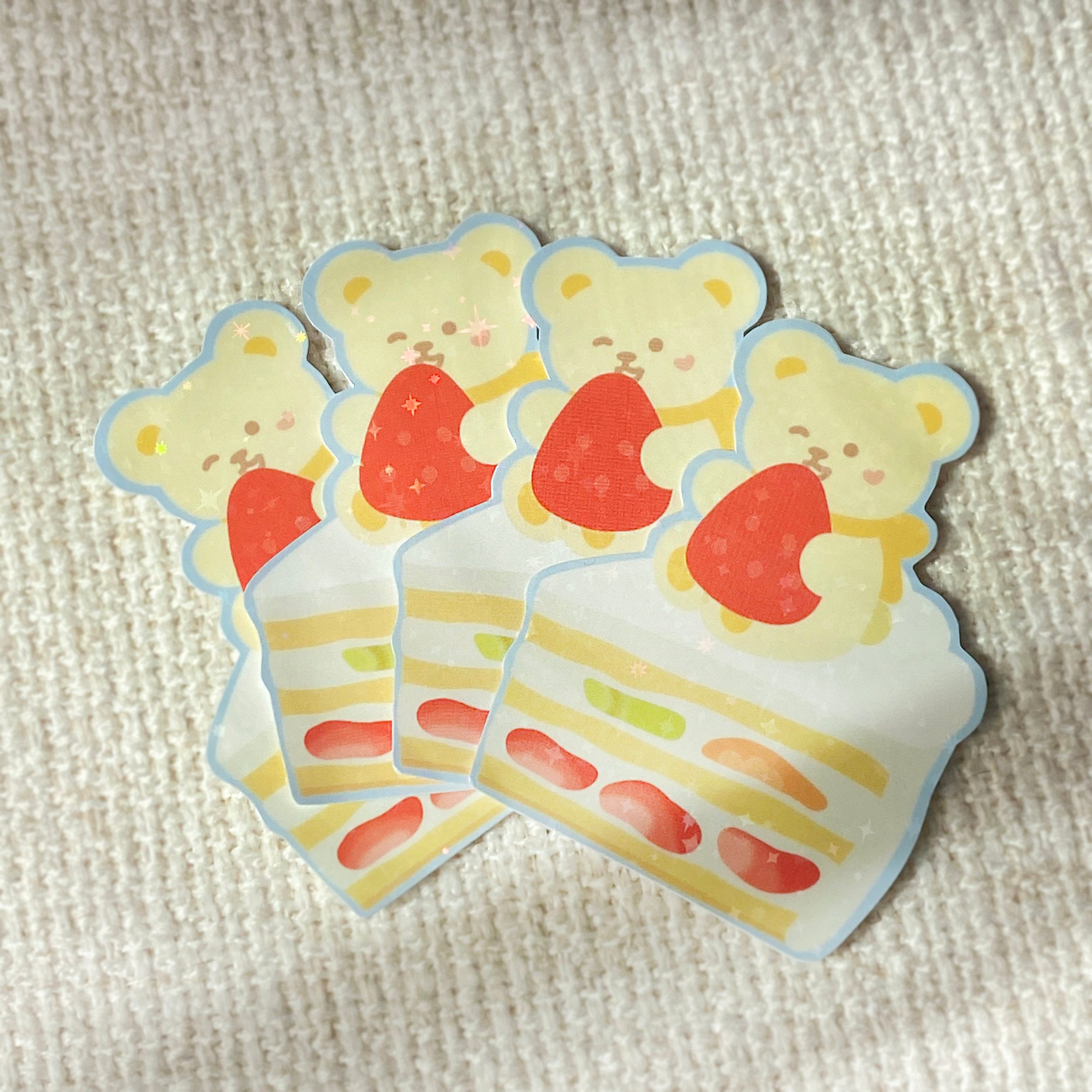 2.25” x 2.75” sticker printed on weatherproof matte sticker paper, topped with vinyl glitter laminate
