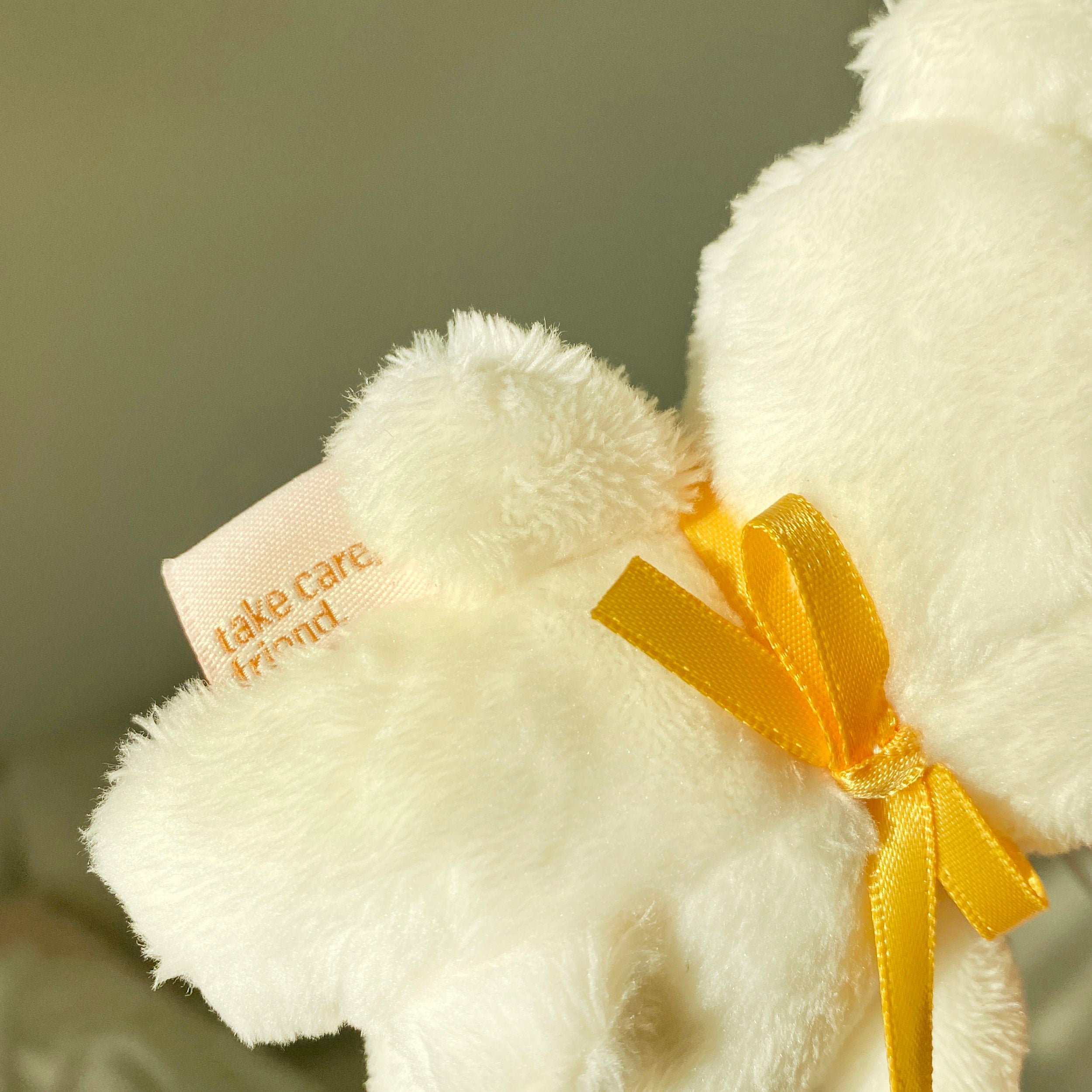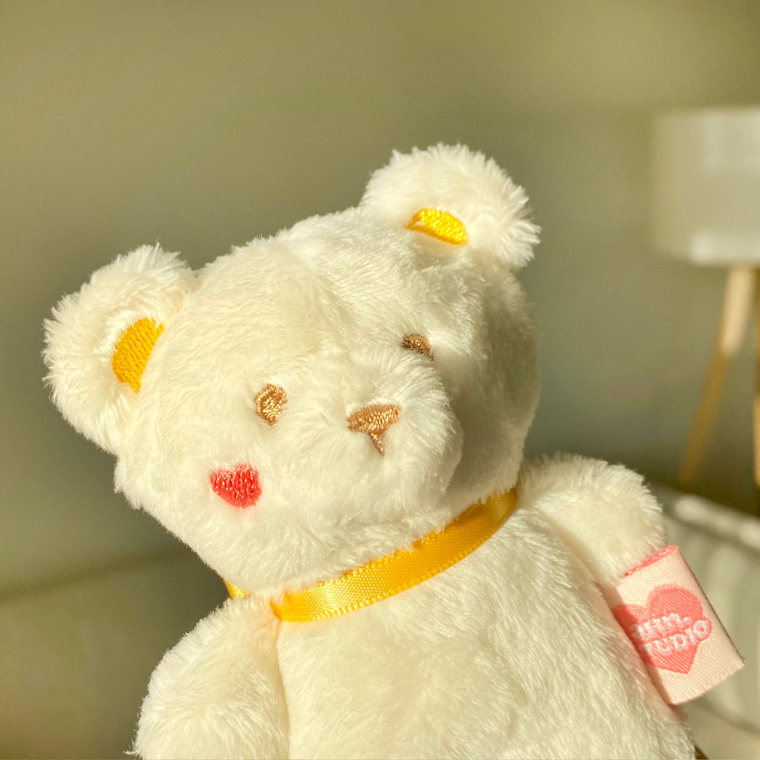 the first ahn.studio plushie product. take this fluffy friend with you on all your daily activities! attach to your bag, keys, desk and more for a cozy touch.