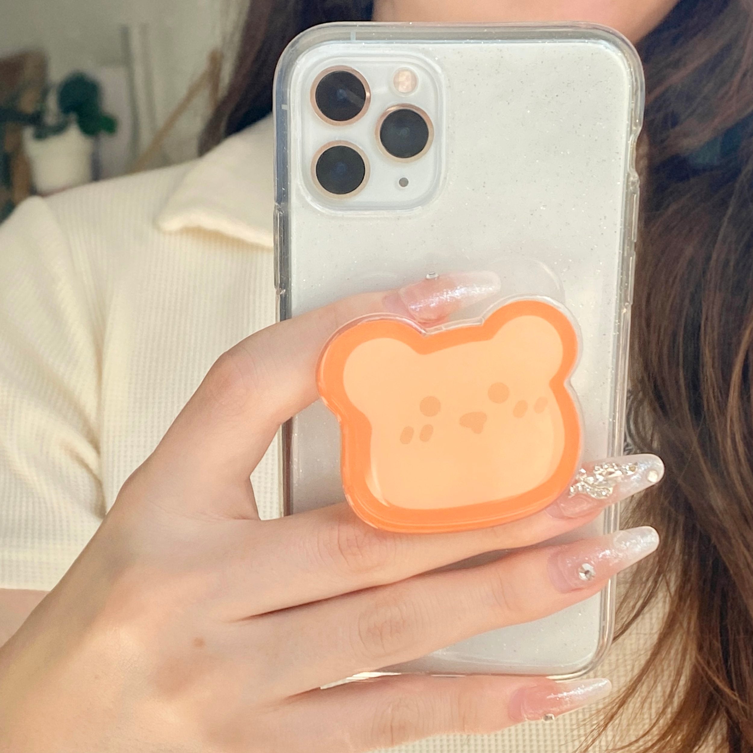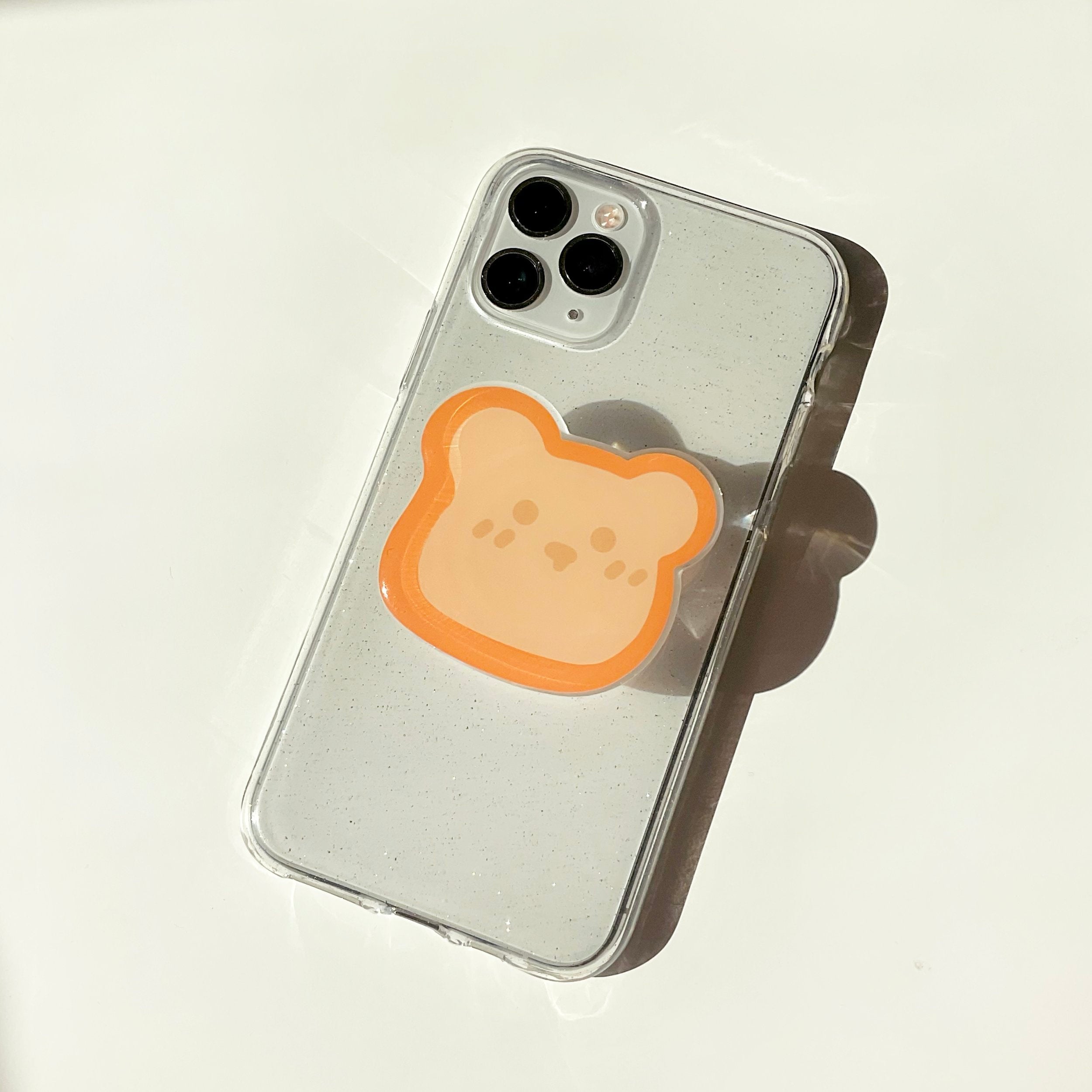 phone grip is made with a glossy, epoxy finishing. phone grips come with a double-sided, sticky adhesive to stick on your phone case. these work best on smooth phone cases, as silicone or textured cases may be difficult for the grip to adhere to.